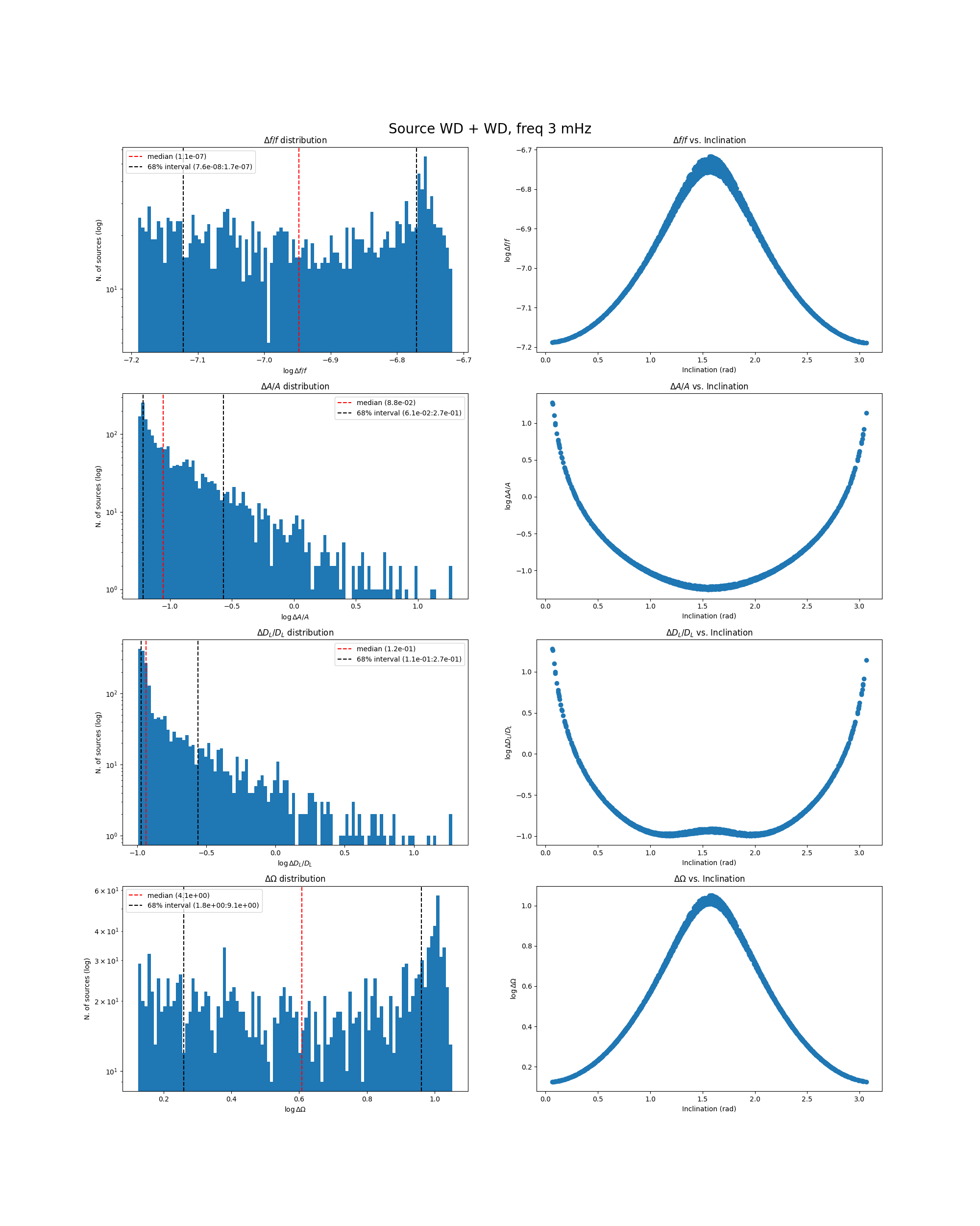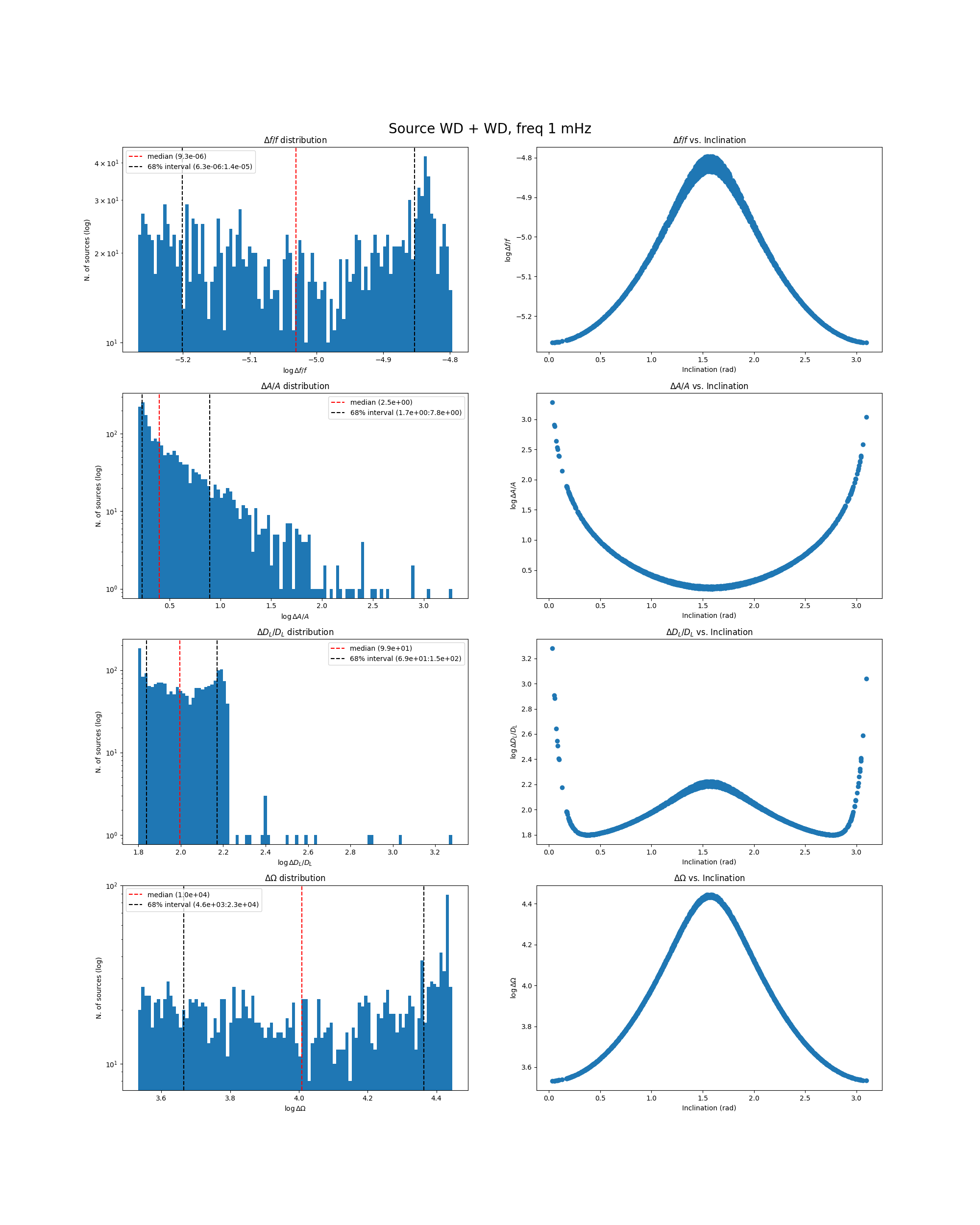 - OK 0.1158172372606471 [1.0 0.5 0.1] : \(\Delta D_L/D_L\) median for WD + WD system with frequency 3 mHz.