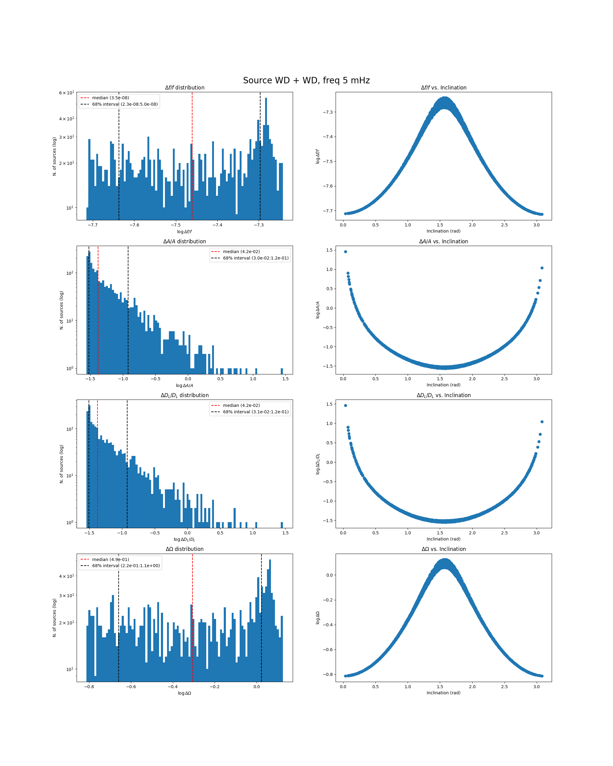 - OK 0.042029254559987794 [0.5 0.25 0.01] : \(\Delta D_L/D_L\) median for WD + WD system with frequency 5 mHz.
