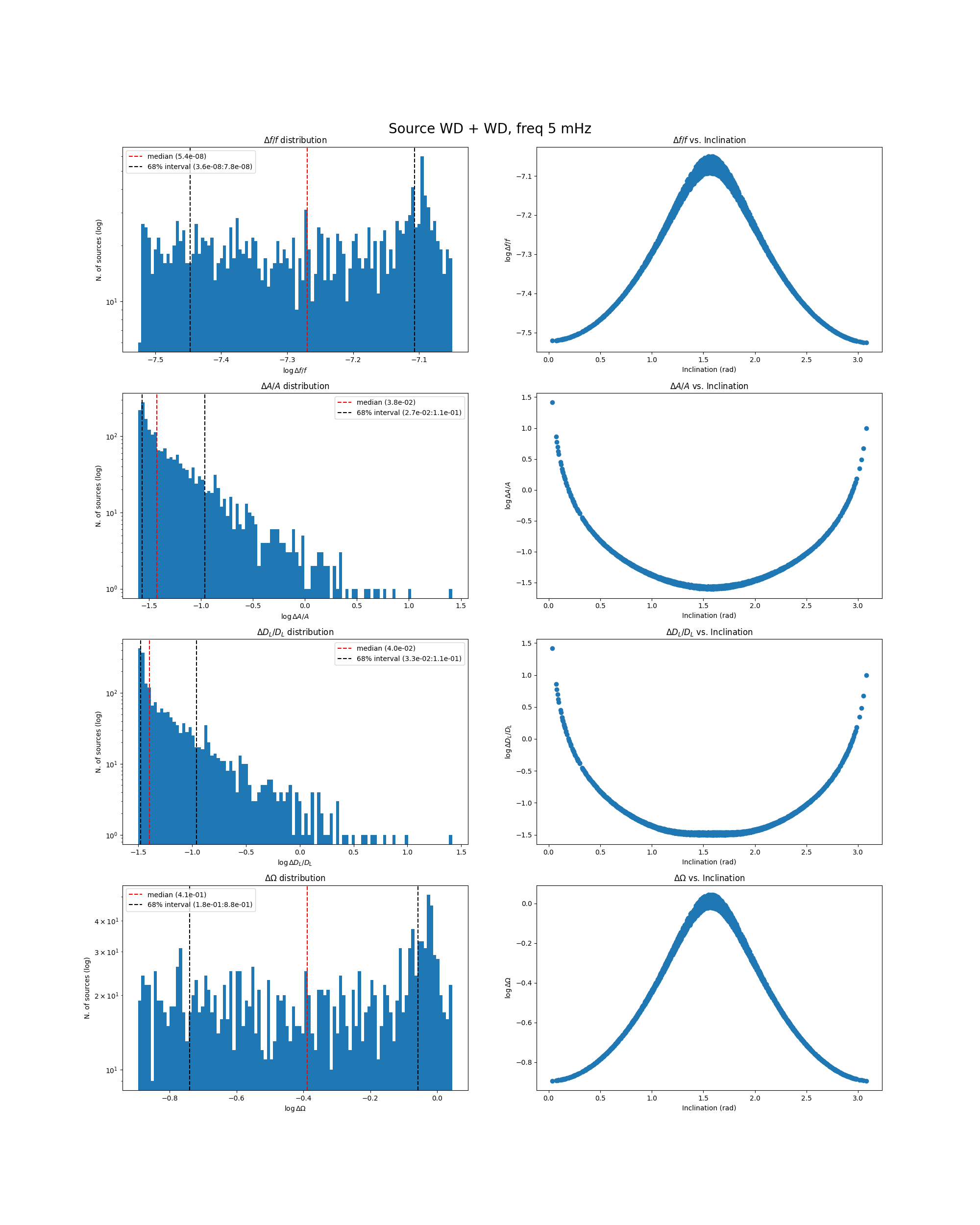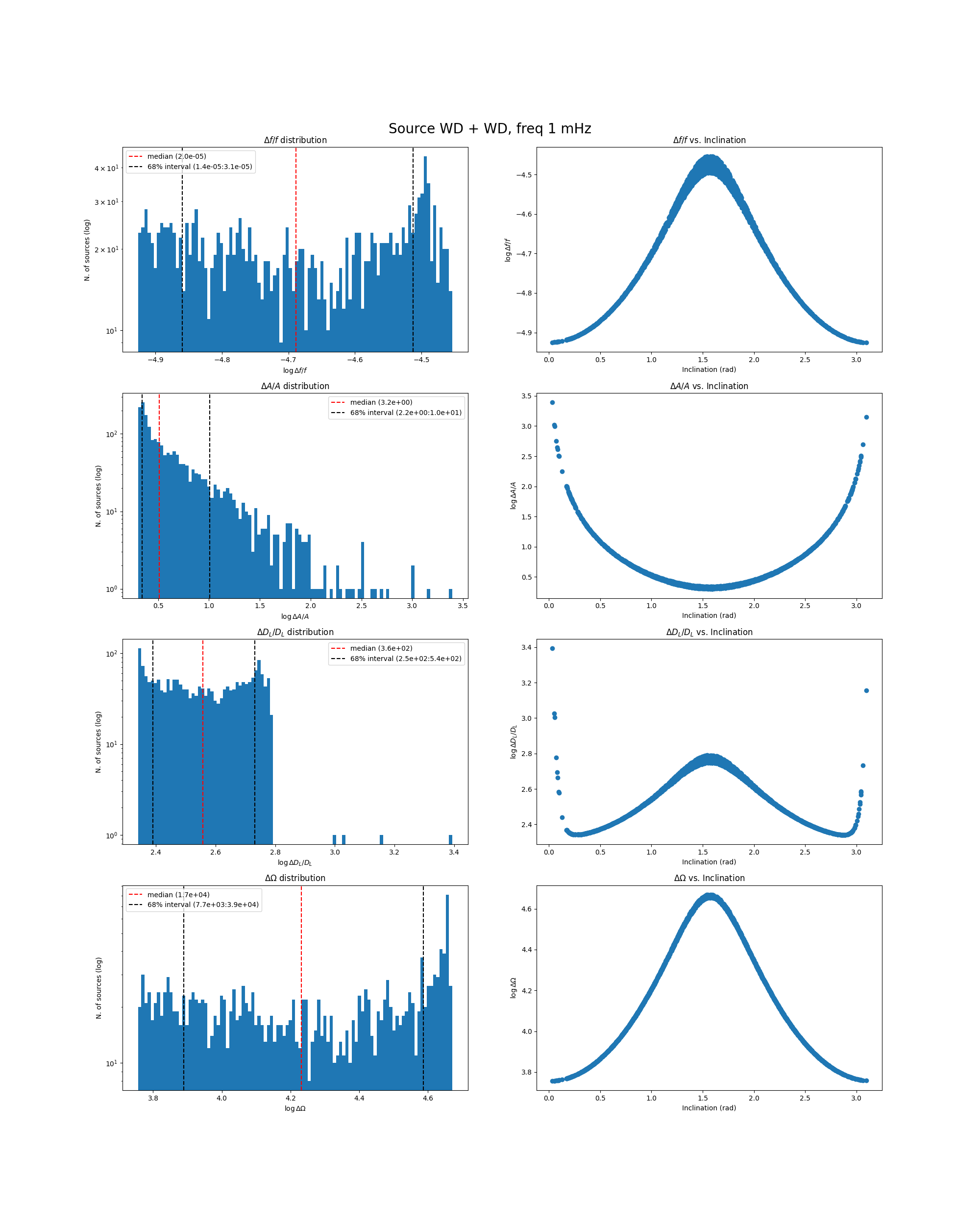 - OK 0.03994138154511272 [0.5 0.25 0.01] : \(\Delta D_L/D_L\) median for WD + WD system with frequency 5 mHz.