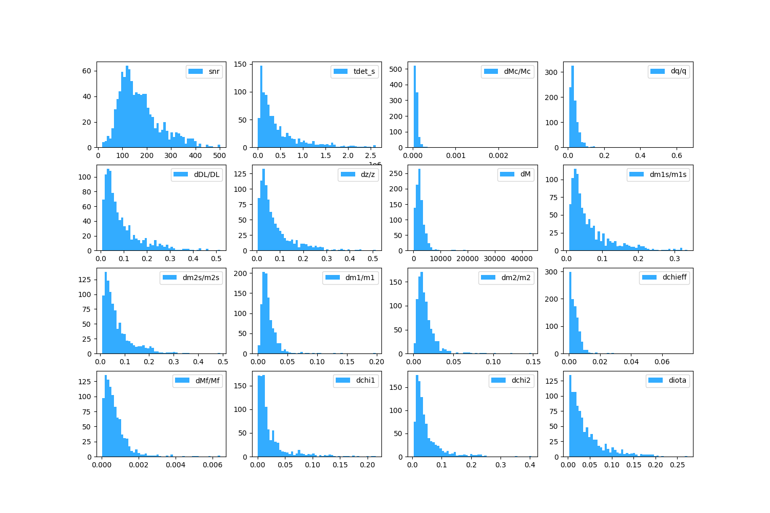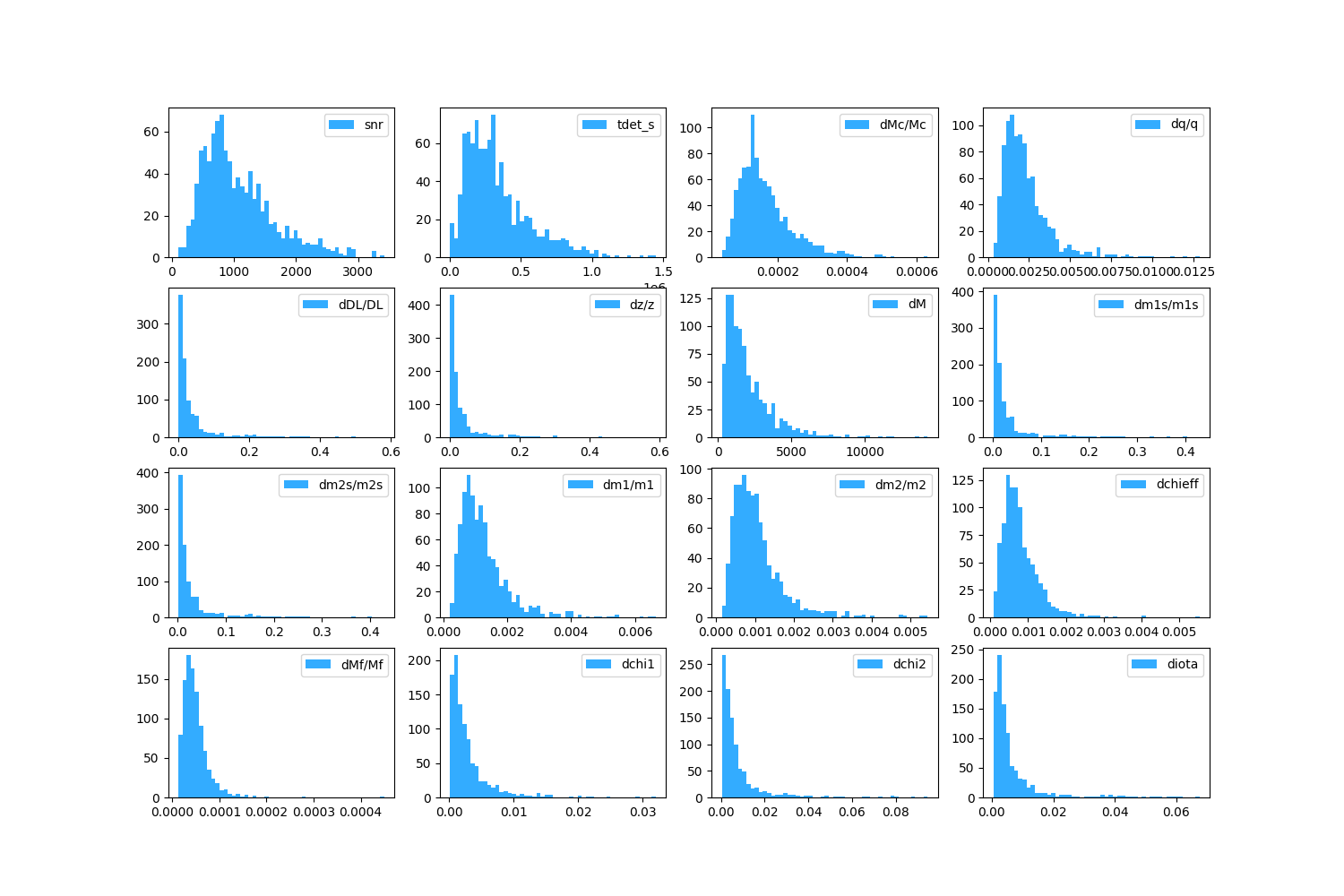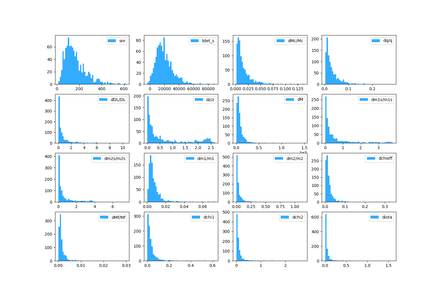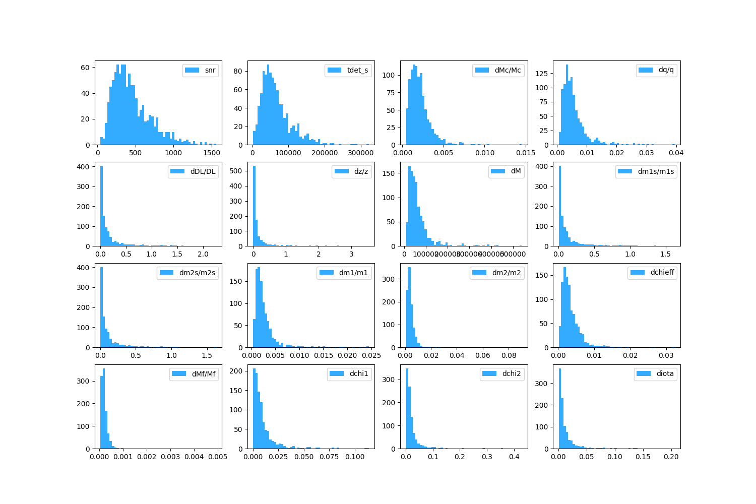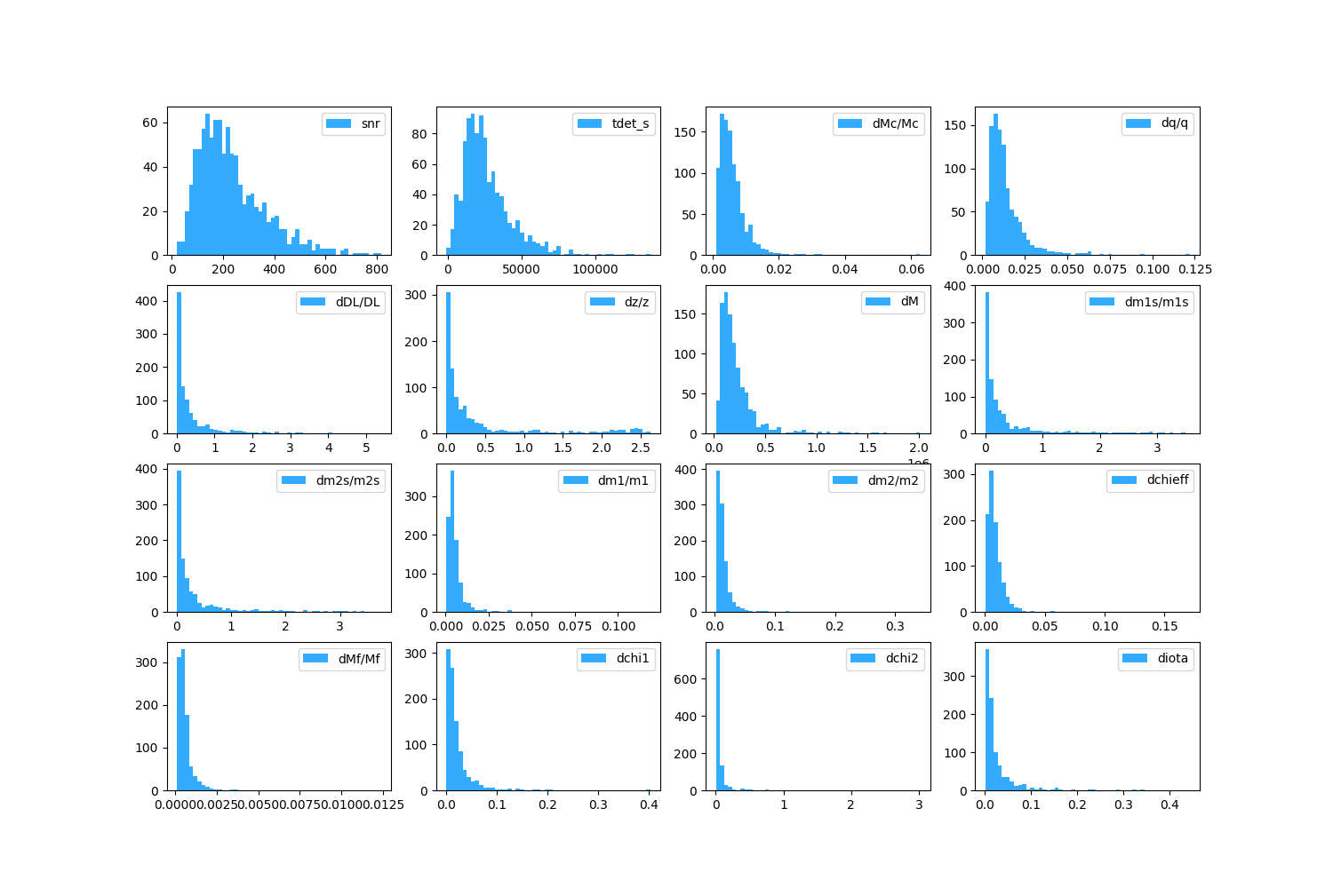 | Ms | z | snr | tdet_s | dMc/Mc | dq/q | dDL/DL | dz/z | dM | dm1s/m1s | dm2s/m2s | dm1/m1 | dm2/m2 | dchieff | dMf/Mf | dchi1 | dchi2 | diota |
