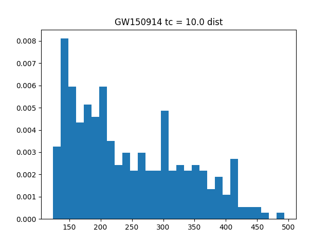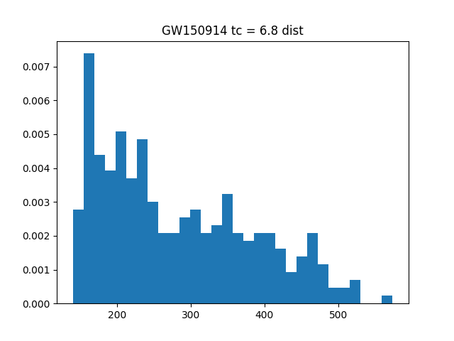 - OK 280.67 [100 200 300] : Maximum average distance of BH-BH with masses [38.6, 33.3] \(M_\odot\) (z = 0.061).