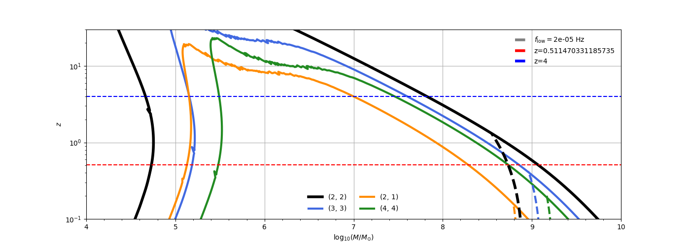 The range of masses for 22 mode is [ 4.38e+04 - 1.63e+08 ] \(M_{\odot}\)