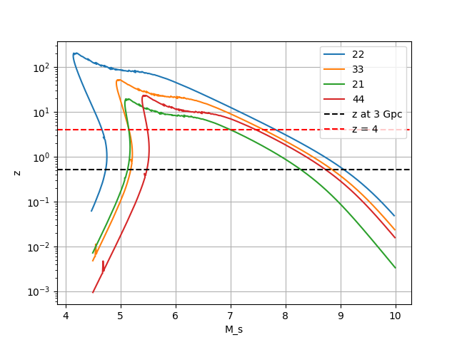 - OK 9.6 [1 5 10] : Detectability of ringdown for high mass SMBH at z=4 (units \(10^7 M_{\odot}\)).
