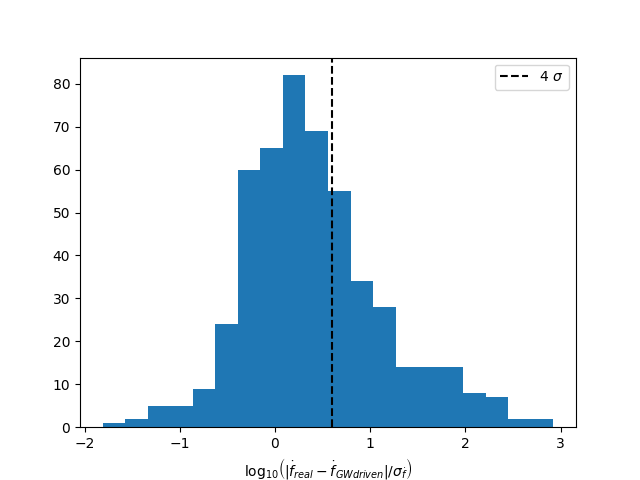 - Difference in fdot compared to GW driven evolution > 4 sigma fdot