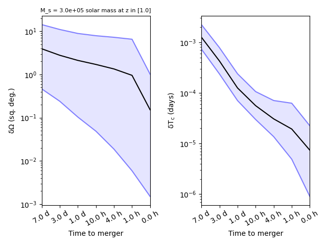 - fom_obj : For a MBHBs with source-frame mass of $3.10^5, 3.10^6 and 1.10^7$ M$_\odot$ at $z = 1$.